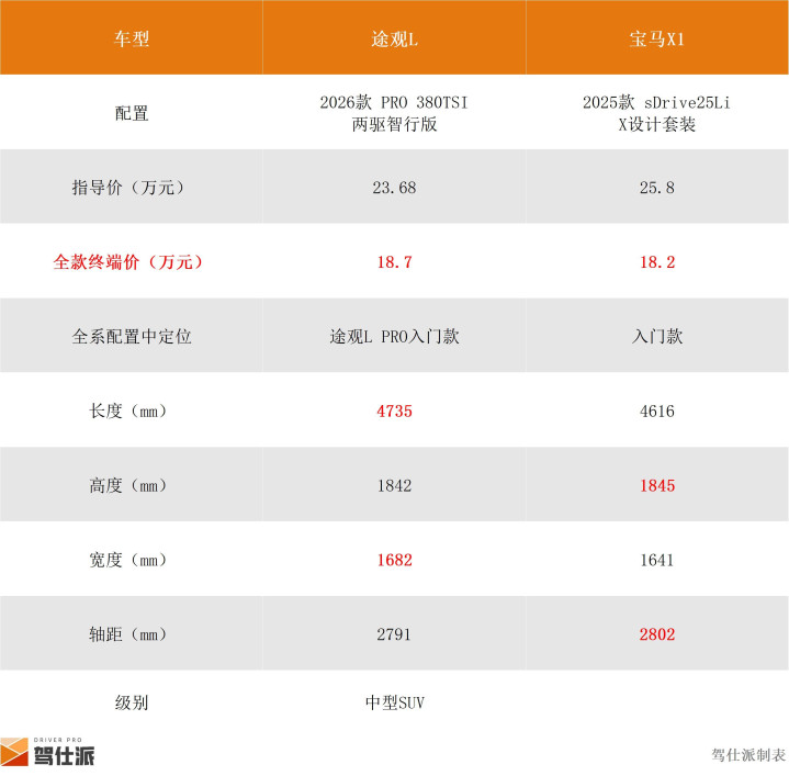 鸡头还是凤尾,购车时是买合资中高配,还是豪华入门款?本系列2026春节前购车导购,从宝马X1和途观L PRO开始说起。