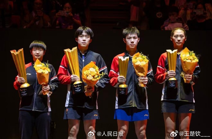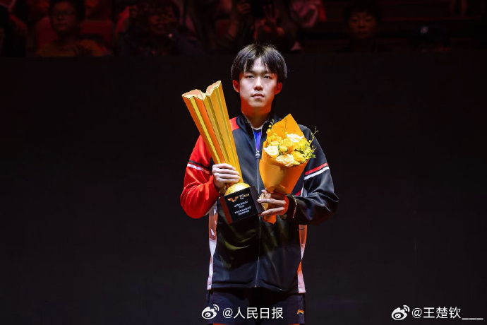 王楚钦夺得3冠后在微博个人账号发文: