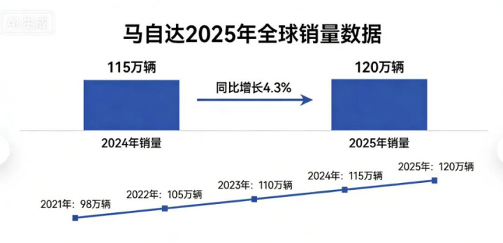 马自达在全球范围的年销量约100万辆,2025年提升至120万辆,与福特还有不小的差距;如果按营业额,马自达更是小弟弟。