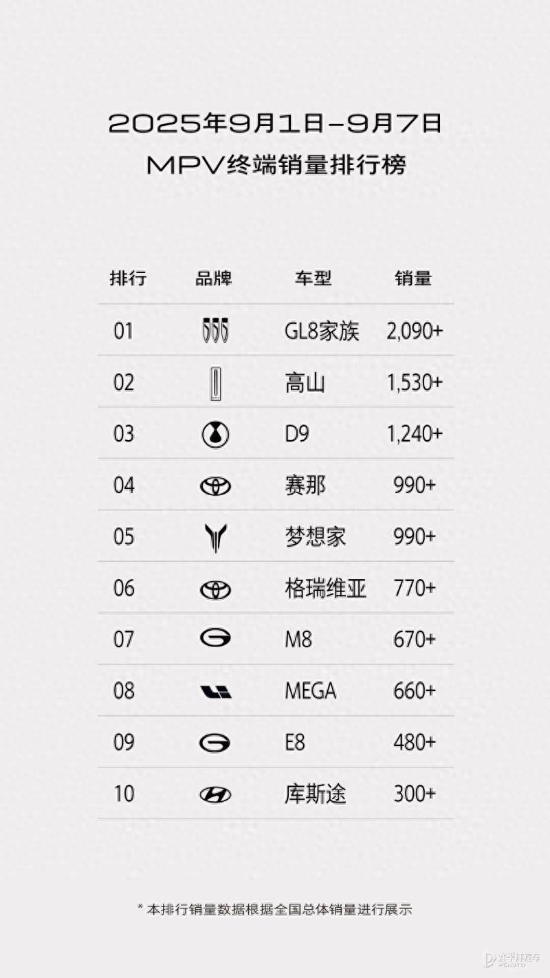 【太平洋汽车 行业频道】9月第一周,别克GL8家族销量超过2090辆,成功蝉联MPV市场销量第一。其中GL8陆尚、GL8陆尊两款新能源MPV表现突出,合计销量占比超60%,进一步稳固了GL8在新能源MPV领域的市场地位。