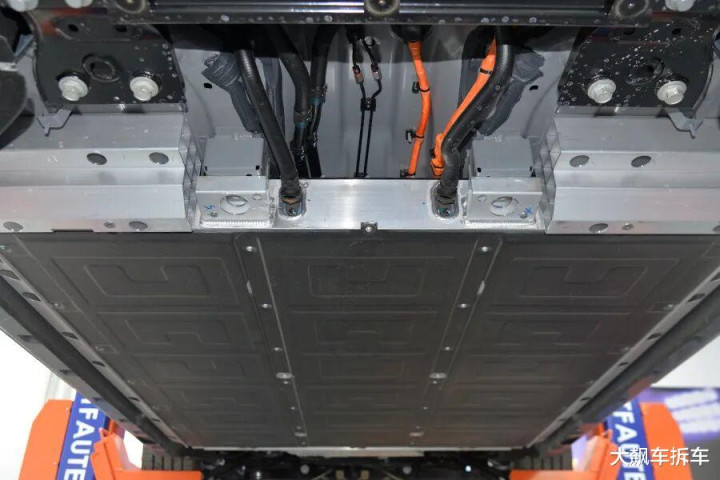 电池的BMS控制器没有放在电池包内,而是外挂结构,主要是为了封装更多的电芯,提高续航能力。这种设计的另一个好处就是检测维修相对比较方便。
