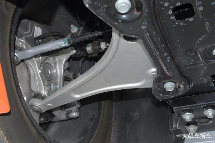 这辆车的前悬采用传统的麦弗逊结构,使用了铝合金材质下摆臂。