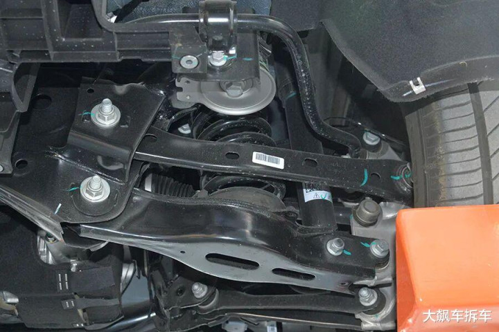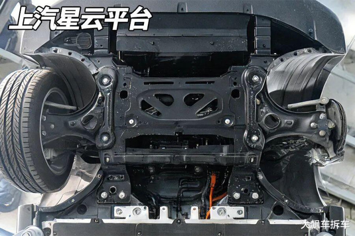 后副车架也是冲压钢板全框结构,后副车架包括后悬架也和上汽星云平台极为相似。