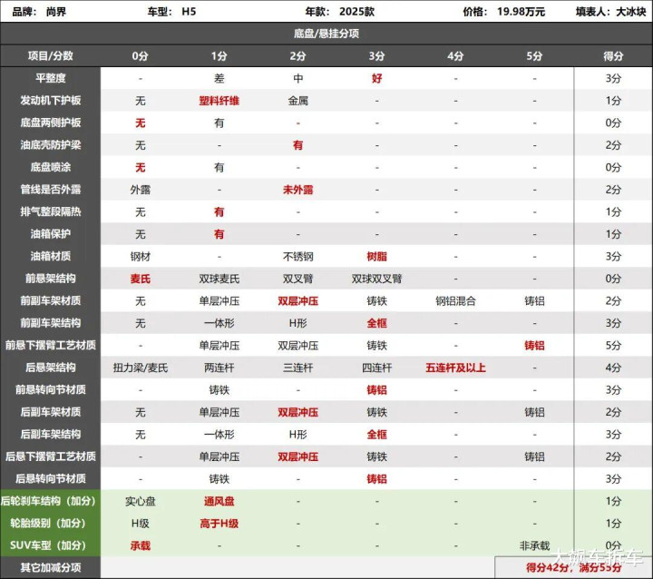 2025款尚界H5底盘评分