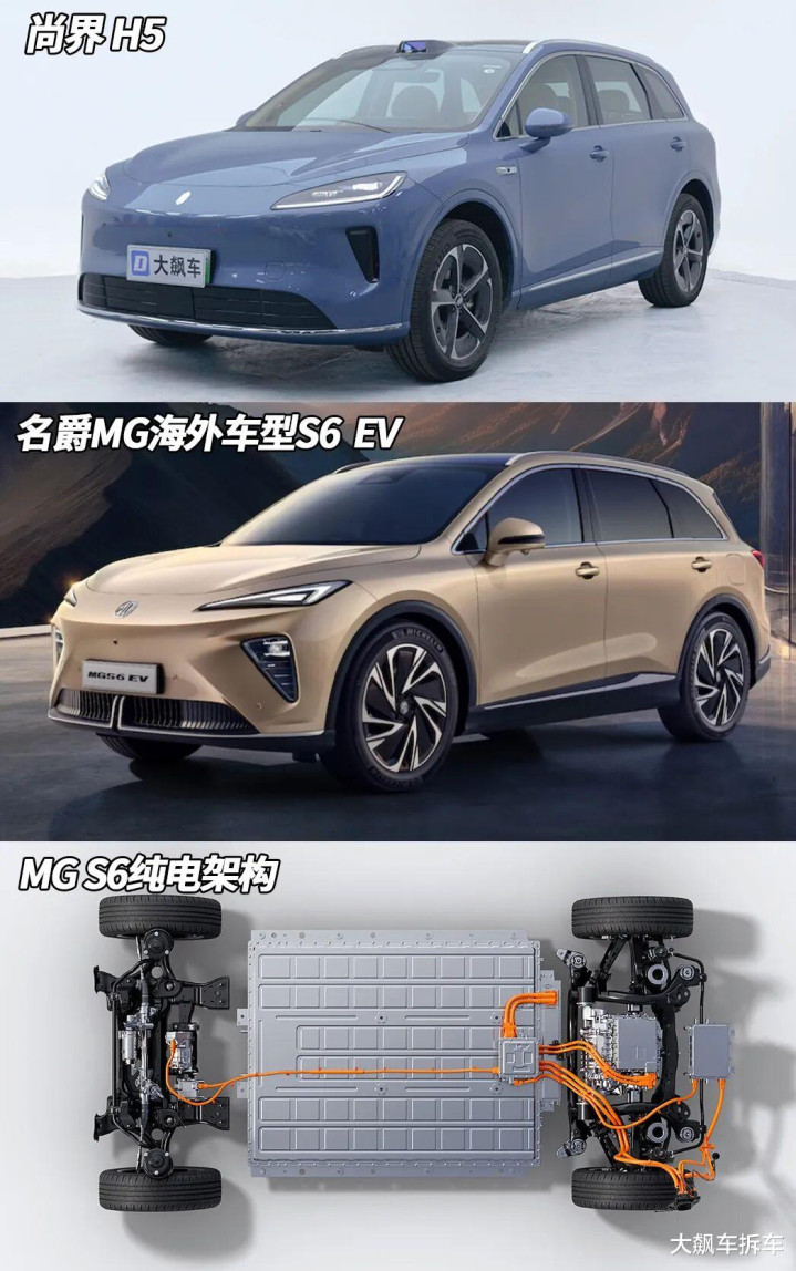 实际上,上汽有一款车,名爵海外版本的S6纯电,并没有在国内销售。从官网给出的公开资料能看到,无论是大小还是外观,甚至是底盘结构和布局,都与这辆尚界H5的相似度非常高。当然这辆S6纯电在英国的售价也不便宜,税前3.6万英镑,约合人民币35万左右。