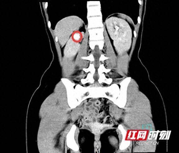影像资料上可以看到女孩右侧多长了一个肾(红圈内)。